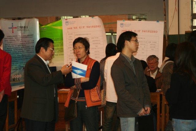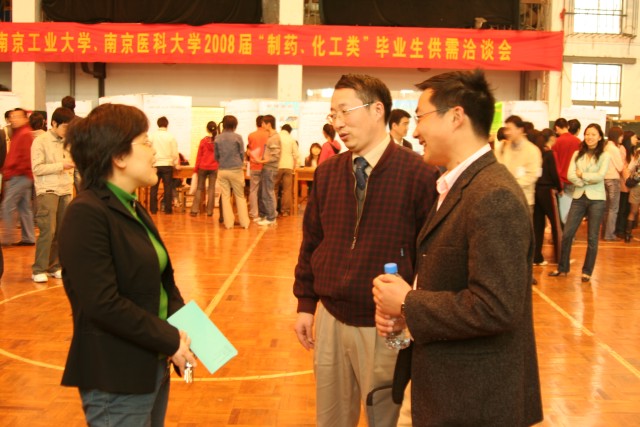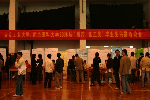 4月11日,由beat365亚洲体育官方网站、南京医科大学联合举办的2008届“医药、化工类”毕业生供需洽谈会在beat365亚洲体育官方网站丁家桥校区体育馆举行。江苏恩华药业股份有限公司、江苏恒瑞医药股份有限公司、江苏豪森药业股份有限公司、扬子江药业集团、江苏正大天晴药业股份有限公司、南京长澳医药科技有限公司、万全科技药业有限公司等60余家来自江苏、上海、浙江、山东、等地区的医药化工类企业,应邀参会就700余个需求岗位进行招聘,受到了公司制药与生命科学公司和南京医科大学药公司500余名2008届毕业生以及化工公司、材料公司、机械公司相关毕业生的欢迎。