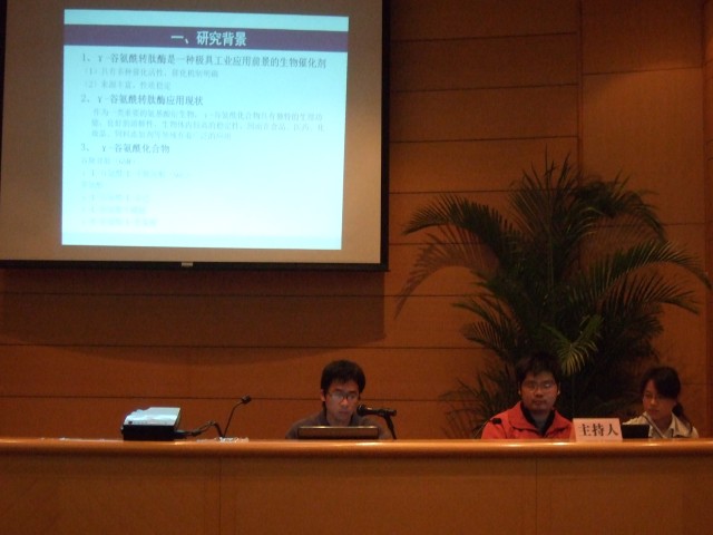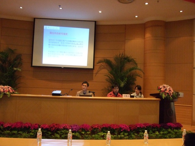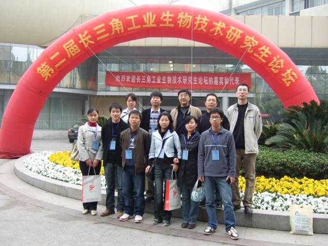 本次论坛以“工业生物技术新时代研究生的发展”为主题,以“探索自主创新之路,迎接生物经济时代” 为口号,由浙江工业大学承办,吸引了五所高校近百余位教师和研究生的积极参与。公司董事长欧阳平凯院士为论坛题词,卢定强教授担任论坛学术委员会副主任,徐虹教授、何冰芳教授担任论坛学术委员会委员,博士生周佳栋担任论坛组织委员会副主任。公司出席本次会议的团队由严明副教授带队,博士生周佳栋、郝宁、吴群,硕士生吴明刚、姚天然、李建、马江峰、李会、刘忠敏、黄秀梅与会。会议期间,吴群承担了第二分论坛主持人工作,吴明刚、姚天然、李建分别在论坛上作了口头报告,李会、刘忠敏也作为公司代表给浙工大的本科生们作了考研经验交流。