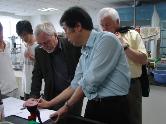 5月12日,德国核医学中心、图宾根大学H. J. Machulla教授和Raytestgs核医学仪器公司G.Dietzel 总经理应刘晓宁、魏荣卿教授的邀请莅临公司访问交流,并参观了国家生化中心、实验中心、色谱中心和刘晓宁教授的合成实验室,与员工就留学交流及药物化学等问题进行了交谈。两位德国专家对公司在培养员工动手能力方面所做的投入给予了高度评价。双方还就核医学放射显像药物的合成及应用领域的合作前景进行了富有建设性的探讨。此次交流更增添了我们在研发生物医学显像药物及生物医学材料中发挥潜在优势的信心和责任。