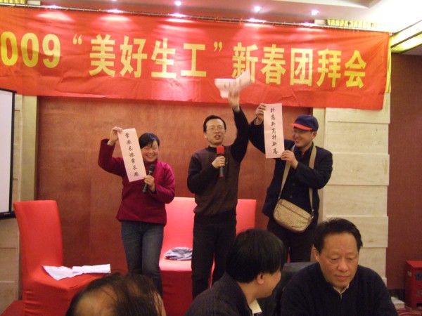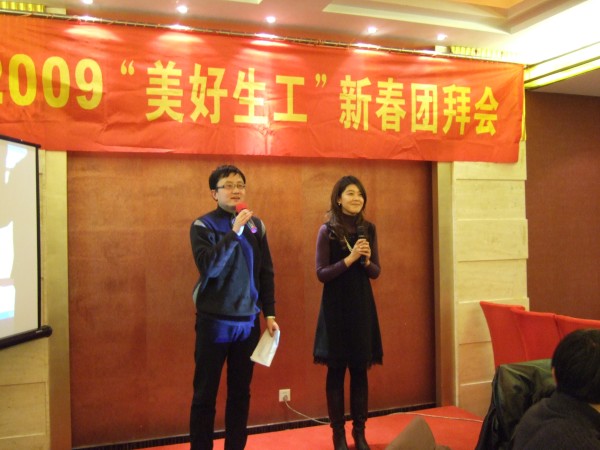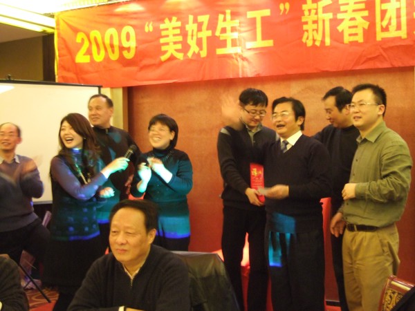 鼠年谱就惊天曲,牛岁迎来动地诗。元月14日下午,公司在天狮百盛酒店隆重举行2009“美好生工”新春团拜会。江苏省科协主席、董事长欧阳平凯院士出席团拜会并作重要讲话。部分企业家客座教授应邀出席团拜会并为与会人员抽奖。团拜会由公司党委书记缪昌美主持。他说:“美好生工”与“美好江苏”、“和谐社会”紧密相联。以“美好生工”为题举行新春团拜会,表达“爱我生工”的自豪感,表达“没有最好,只有更好”的责任感,就是要放飞我们的美好心情,表达我们的美好祝福,凝聚我们的美好愿景,实现我们的美好期待!