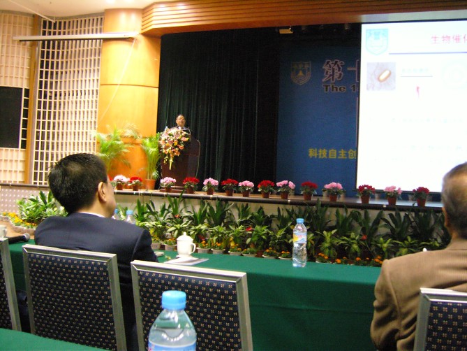 欧阳平凯院士作了《现代生物催化与生物转化的现状与思考》的大会特邀报告,就现代生物催化和生物转化技术在能源、材料和精细化学品领域的应用及将来的发展方向方面向与会专家学者进行了介绍,提出了应针对我国的实际国情发展生物催化和生物转化,以解决我国当前面临的资源、能源和环境问题。