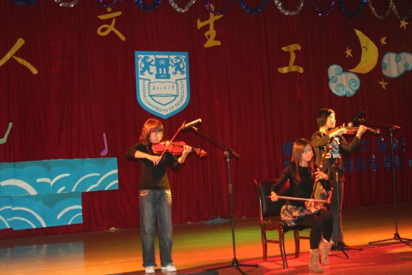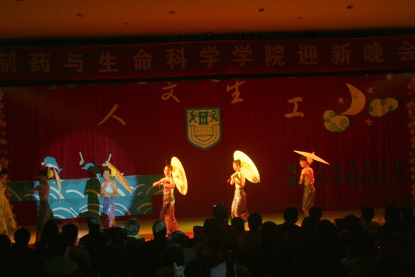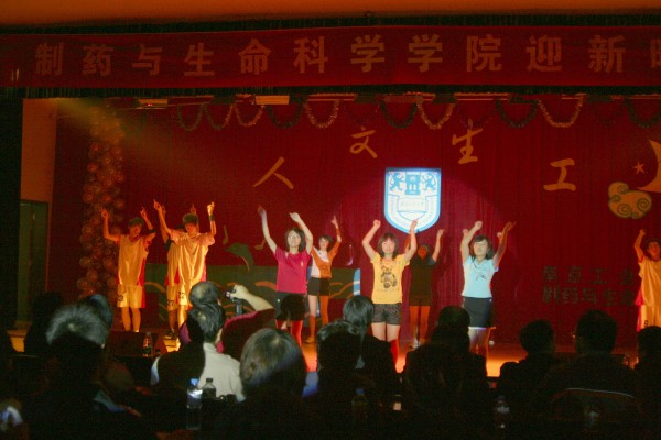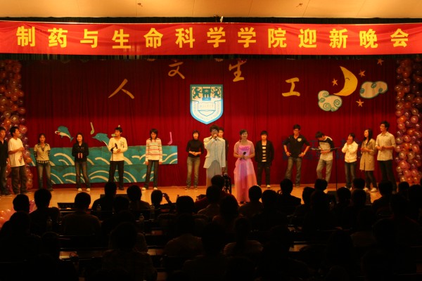 生工0801班同学带来了开场舞蹈《歌舞青春》,一段劲歌热舞向全体师生展现出了新生们的风采和活力。相声《挂科大王》和小品《买衣服》从不同角度表现出当代老员工的困扰与迷惘,引人发笑的同时又发人深省。朗诵《非凡2008》描述了中国荣耀与灾难并存的一年,令人感动不已。伴着轻柔的旋律,一段傣族舞将美妙的傣族风情带入每个人的心中。相声《那证儿》道出了如今的食品安全问题,又一次引发了观众的深思。快板《十八愁》令人耳目一新,台下观众赞叹不已。一支《斗牛舞》展现了年轻人的朝气与活力,将整台晚会推向高潮。最后,伴着《和未来有约》的优美旋律,学哥学姐们送上了对新生们的美好祝福,为此次迎新晚会画上了圆满的句号。