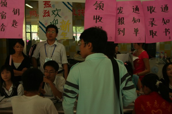 今年,公司新生401人,其中南京中医药大学交流生90名。9月13日,新生报到日,公司领导亲临迎新现场,指导迎新工作;公司党委李学明副书记以及辅导员老师始终奋战在第一线;身穿红马甲的志愿者顶着烈日穿梭在人群中,热情而耐心地帮助新来的学弟学妹,向他们传递beat365亚洲体育官方网站的人文精神。 晚上,各班导师班主任深入员工宿舍,看望新生,并给他们带去中秋佳节的问候和祝福,让新生在进入大学的第一天即感受到了集体的温暖与关怀。