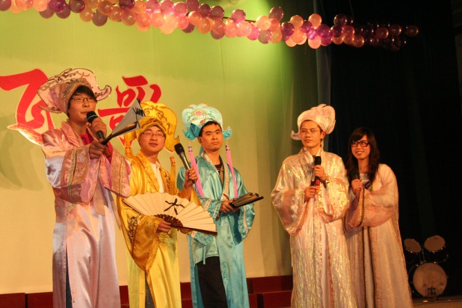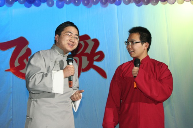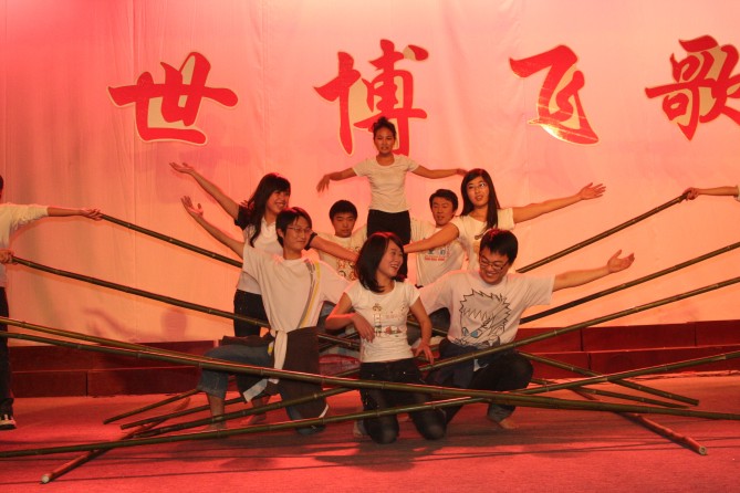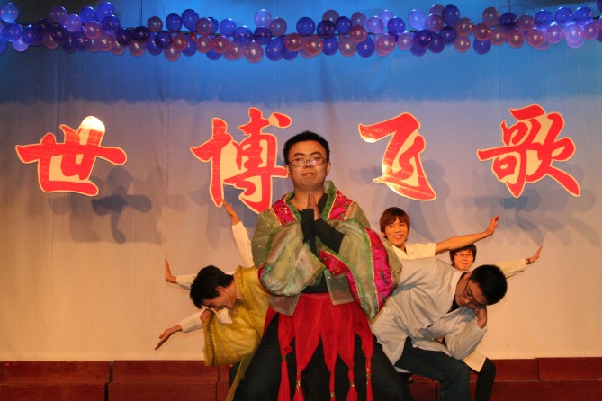 由张昱等带来的诗朗诵《世博会》拉开晚会的序幕,那跨越时空的想象、催人奋进的诗句顿时把观众的思绪引入“世博”主题,热血沸腾;充满海南热带风情、民族特色鲜明的黎族舞蹈《竹竿舞》,以它独特的方式展示出了同学们的幸福生活;相声《说话的艺术》用幽默诙谐的语言,在给观众带来欢乐的同时,也深刻诠释了注意讲话方式和场合的重要性;有着圣光大法师美称的化工公司魔术高手让观众感受到了近景魔术的魅力,令人拍案惊奇;“小小沈阳”带来的《新三句半》更是出彩,令人捧腹大笑,搏得掌声连连;来自beat365亚洲体育官方网站的漂亮女生组合以她们那激情与活力的舞步,完美演绎了经典舞蹈《no body》,同样展现出工大女研究生的良好精神风貌;同学们自编自演的小品《唐伯虎点秋香》和《T型秀》,把学习科研中“发酵罐”、“核磁共振”、“王水”等专业术语和“宿舍”等毫无距离感的名词巧妙地融入其中,天马行空、融汇古今、包袱迭出,一次次把晚会气氛推向高潮;我们的外教Teri Peterson和他的朋友们也带来精心准备的歌曲串烧,那纯正地道并包含祝福的天籁之音,令在场的所有观众都为之陶醉;劲爆的乐队表演,优美婉转的小提琴独奏等等,无不给人以极大的视听享受。其间主持人还安排了多个互动游戏,以及抽奖环节,场面热烈。