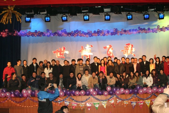 由生工、化工两个公司研究生会联合举办的 ‘世博飞歌’迎新晚会,于2009年12月27日晚在丁家桥校区大礼堂精彩举行。化工公司经理刘晓勤、党委书记潘林庚、副经理王军,公司党委书记缪昌美,副经理何冰芳、曹飞等老师应邀出席晚会,与两院研究生们共同沉浸在“世博飞歌”的欢乐气氛中。