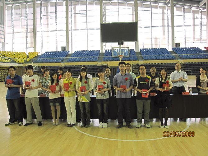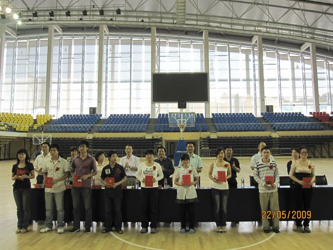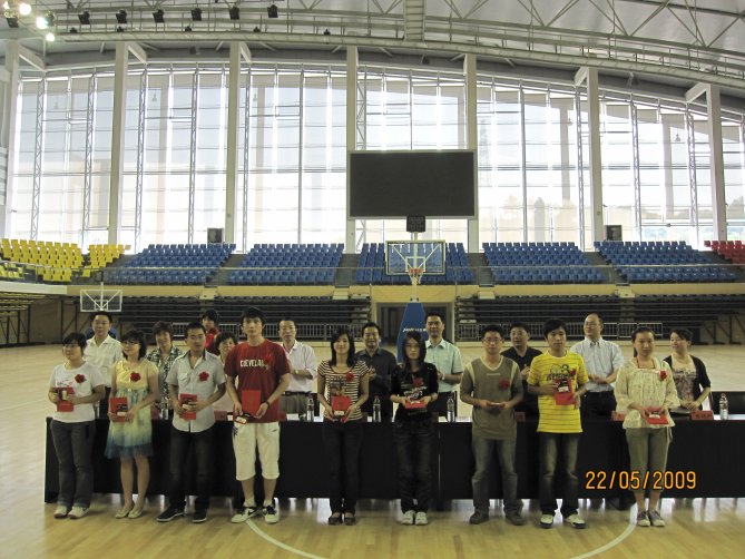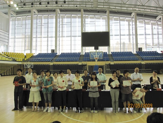 5月22日下午,beat365亚洲体育官方网站、食品与轻工公司、药公司在江浦校区体育馆,隆重举行“用五四精神书写青春”——2009届考研表彰暨考研动员大会。出席大会的有三院领导班子成员、各系(室)负责人、教工党支部书记、员工辅导员、班主任和三院本科生。大会由药公司周华书记主持。校员工工作部副部长杨琦同志应邀出席大会宣读表彰名单,并与出席大会的公司领导为beat365亚洲体育官方网站沈燕等54名同学、食品公司张臻等24名同学、药公司王益群等15名同学、自学助考生物技术专业康武同学,共计94名考取研究生的同学颁发了《学习标兵》荣誉证书。支秋霞同学代表受表彰的同学作大会发言,与大家共同分享了“天道酬勤”的喜悦。食品与轻工公司熊晓辉书记宣读获得色谱技能培训合格证书的同学名单,60名同学带着提升就业竞争能力的自信,从与会领导手中接过了色谱技能培训合格证书。