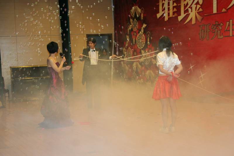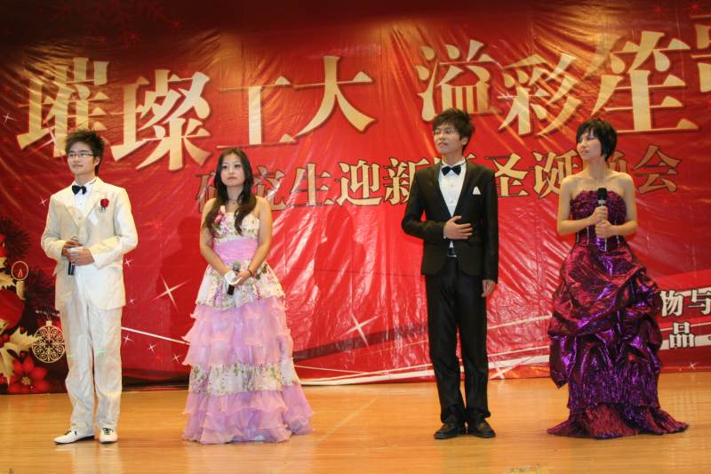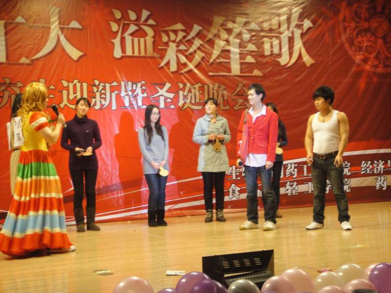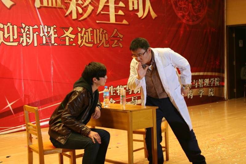 历时三个小时的晚会,台上的节目五彩缤纷,热闹非凡,台下的观众掌声雷动,笑声起伏。开场舞蹈《闪闪惹人爱》向全体师生展现出了同学们的活力和风采;相声《我的大学》基于现实和创新的基础上,独到的释义,精准的演绎,引人发笑的同时又发人深省;帅气的女调酒师给我们展示了让人眼花缭乱的炫舞花式调酒艺术;乐器演奏和歌曲串烧则展示了同学们的多才多艺,钢琴独奏《一分钟圆舞曲》的优雅和《天鹅》的欢快从演奏者跳动的手指中潺潺流出,让人享受到音乐的魅力;而英语歌曲《Put your records on》和外教的德文歌曲《Stille Nacht》则让大家感受到了浓浓的异国风情。街舞秀、舞蹈串烧《精舞门》和轮舞青春伴随着时尚欢快、激情洋溢的旋律,充分展示了同学们的青春活力和奔放激情;魔术《梦幻之绳》把大家带入了神奇的梦幻世界,“五花大绑”让人大呼不可思议;小品《心理医生》和《非诚勿扰》以现实生活为原型,通过演员们活灵活现的表演给观众们带来了无限的欢声笑语,将晚会的气氛推向高潮。此外,贯穿整场晚会的游戏和抽奖环节,使台上台下互动起来,让更多的观众参与其中,享受快乐。最后,伴着《和未来有约》的优美旋律,演员们用优美的歌声,为此次迎新暨圣诞晚会画上了圆满的句号。