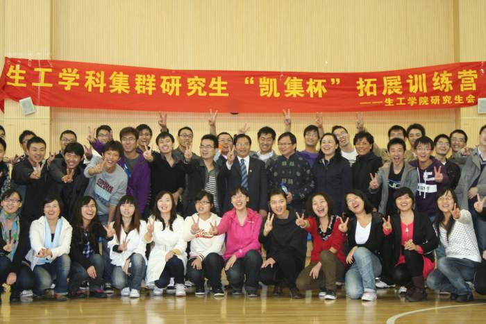 短评:这是生工学科集群2010级研究生第一次参加素质拓展训练营,感觉受益匪浅。2010级生工研究生汇聚在一起,大部分彼此陌生,可在参加拓展训练过程中相互默契配合,为团体荣誉而战,教练员幽默、充满智慧的讲授给队员们的震撼,颇有绕梁三日不绝于耳之感。各位研究生正是在这样特殊的一天之后关系有了质的飞跃,彼此没有了隔阂。人与人之间的交往不需要什么特殊的工具,有时候仅仅是一句问候,一个不经意的动作。一个团队荣誉的取得关键是队员的信任和支持。一个优秀的团队不一定非得每个个体都是最优秀的,只要我们能默契配合,使“资源最优化配置”,发挥出最大作用,我们就一定是最棒的!生活中给予我们帮助的人很多,我们必须要怀着一颗感恩的心对待他们。在这里我们真的学到了很多的人生道理,感悟了人生的真谛!感谢“生工学科集群研究生‘凯集杯’拓展训练营”,感谢李教练,感谢训练营的所有队员,让我们享受了美好的一天!