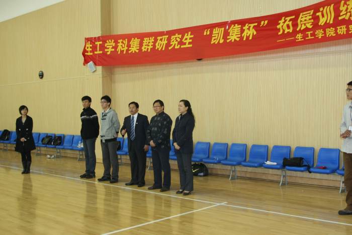 2010年10月24日(星期日),生工学科集群研究生‘凯集杯’拓展训练营在公司江浦校区体育馆精彩举行。来自生工学科集群的2010级研究生欢聚一堂,参加了为期一天的拓展训练。生物与制药工程公司党委书记缪昌美老师,经理韦萍教授,苏港凯集生物有限公司总经理、公司生物资源工程研究所所长陈集双教授,应邀出席了开营仪式。训练营期间,苏港凯集生物有限公司董事长束剑峰先生莅临现场看望大家并合影留念。