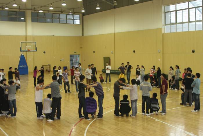 承担本次活动的主教练是在业界颇具名气的李猛教练,李教练首先安排队员做一些小游戏,意在使学员深入了解自己的同伴,打破人与人之间的隔膜。在一番轻松地热身之后,队员们在教练的指导下被随机分为四队,每个团队要求在十五分钟内选出一名队长、一名队秘,要求设计出自己的队标、口号和队歌。参训队员找到组织后,很快就进入角色,大家集思广益,经过一番热烈的讨论,四个颇具创意的团队横空出世。他们分别是:一队囧之队、二队超人NO.1队、三队战神队、四队破冰队。只看这些大气的队名就豪气十足,期待他们的良好表现。在接下来的团队展示过程中,各队特色鲜明,给人眼前一亮的感觉。