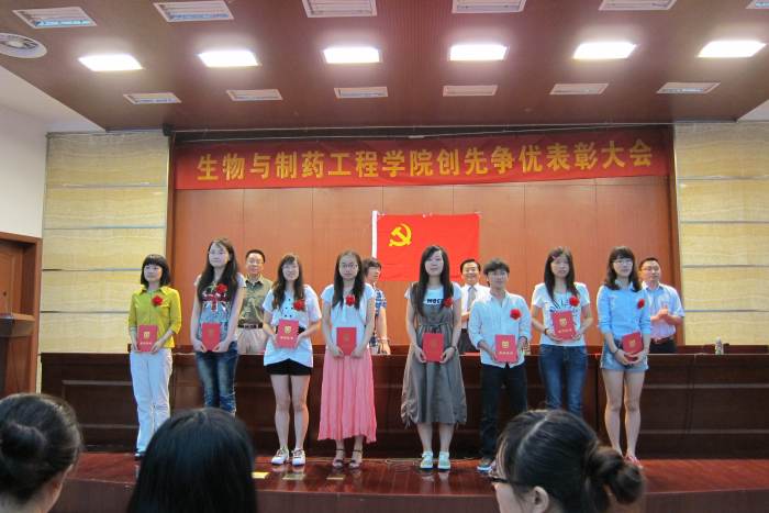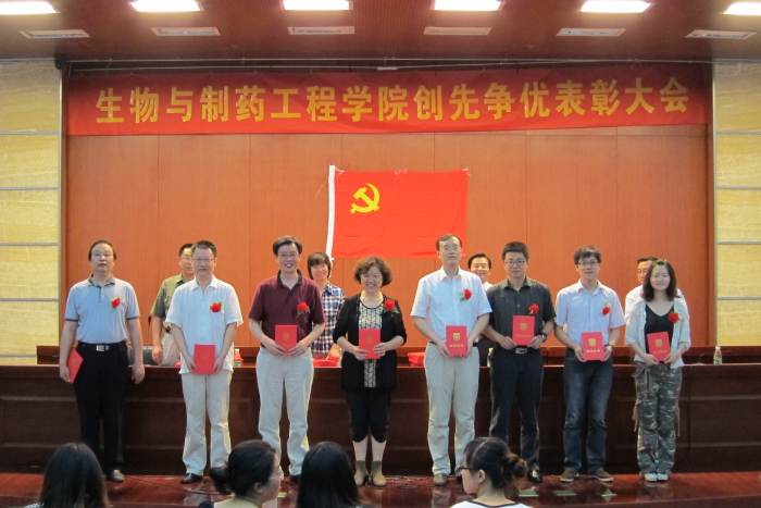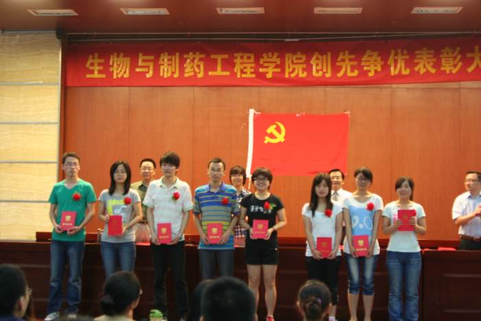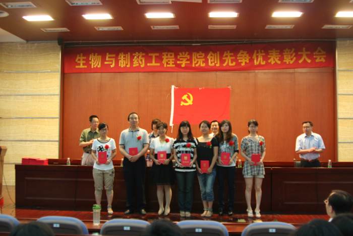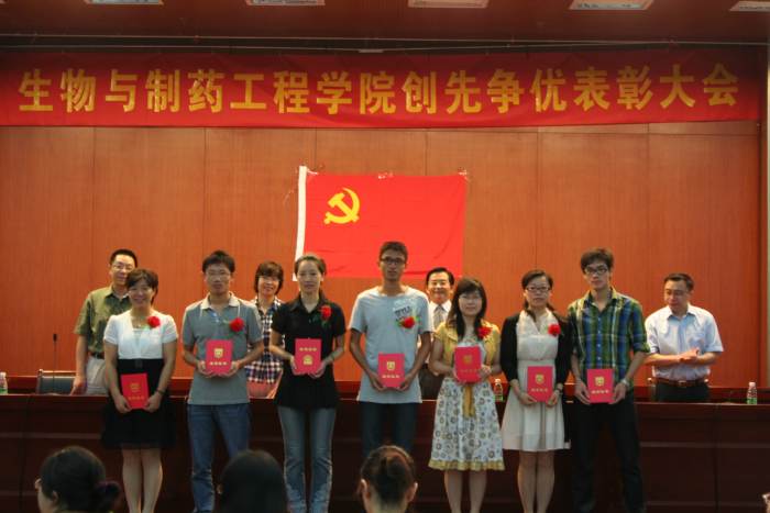 2011年6月11日上午,生物与制药工程公司党委在丁家桥校区科技创新大楼5楼报告厅,举行创先争优表彰大会。出席会议的有公司党委委员、各党支部委员、受表彰的先进党支部、优秀共产党员、优秀党务工作者、新加入党组织的预备党员、2010届毕业生党员。大会由公司党委副书记熊强同志主持。副经理何冰芳同志宣读表彰决定。beat365亚洲体育官方网站教工第3党支部等8个先进党支部、李振江等54位优秀共产党员、李霜等7位优秀党务工作者佩戴光荣胸花,获到了公司党委的表彰;99名新党员在副经理姜岷同志的带领下面向党旗庄严宣誓,发出了誓为共产主义奋斗终身的决心。