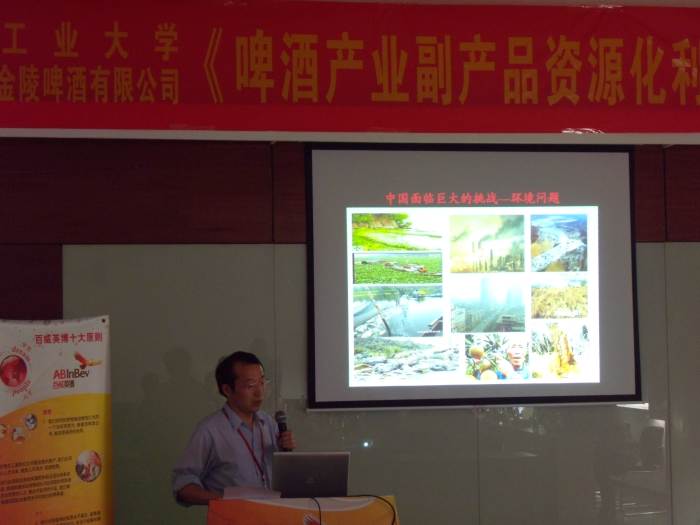 研讨会上,英博金陵啤酒有限公司环能部杜立宁经理着眼于2012年底要达到的环保指标,介绍了啤酒产业副产品资源化利用技术研发过程遇到的难题。公司生物能源与环境生物技术课题组成员周华教授,介绍了低品位生物资源利用的路径和前景。研讨会期间,与会人员实地考察了英博金陵啤酒的生产工艺流程,了解了啤酒产业副产品资源化利用技术难题的第一手资料。会议认为,双方一墙之隔,环保紧密关联,厂方亟待破解的难题正是公司生物能源与环境生物技术的创新指向。搞好双方的合作,对于英博金陵啤酒有限公司“做最佳的啤酒公司,酿造更美好的世界”,将从创新驱动的意义上产生一定的社会经济效益。