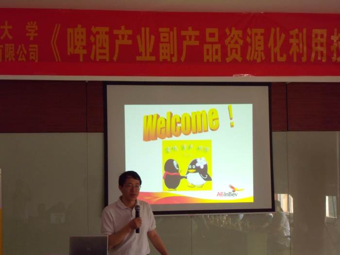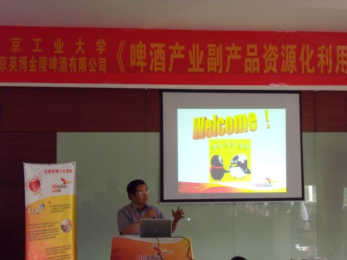 2011年6月3日上午,由缪昌美、周华、耿文华、何若平、贾红华、李晖以及部分研究生组成的生物能源与环境生物技术考察团应邀走进友邻单位——南京英博金陵啤酒有限公司,共同研讨“啤酒产业副产品资源化利用技术”。生物与制药工程公司党委缪昌美书记、英博金陵啤酒有限公司王华南厂长,分别代表校企双方致辞,对双方在科技合作、人才培养、文化建设等方面互补共赢,充满了期待。