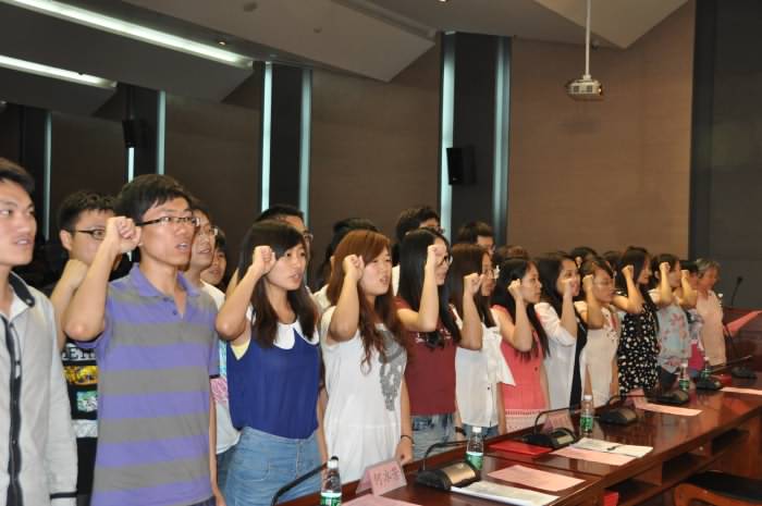 百名新党员在优秀共产党员、博士生导师许琳教授的带领下,面向鲜红的党旗庄严宣誓:“我志愿加入中国共产党,拥护党的纲领,遵守党的章程,履行党员义务,执行党的决定,严守党的纪律,保守党的秘密,对党忠诚,积极工作,为共产主义奋斗终身,随时准备为党和人民牺牲一切,永不叛党。”