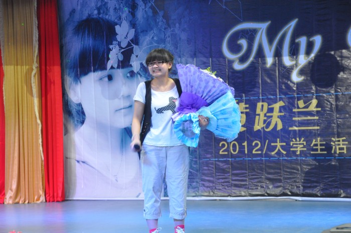她喜欢唱歌,站在舞台上的那一刻是最快乐的,她用心去歌唱,大家赞同的掌声是对她最好的肯定。