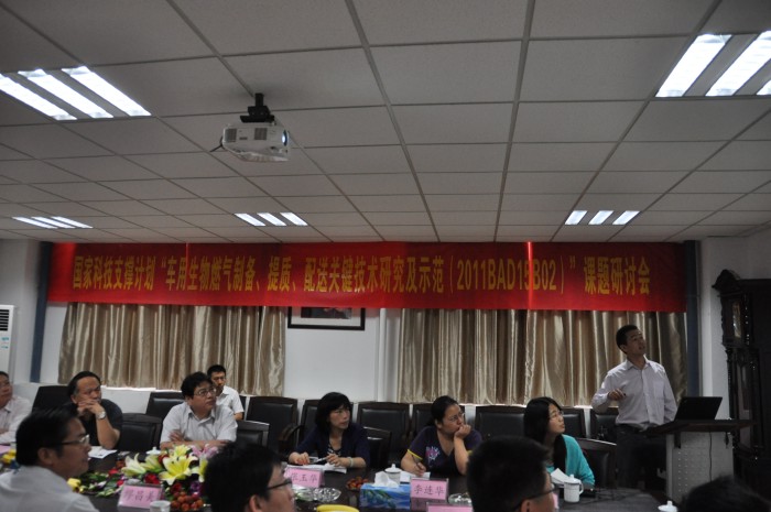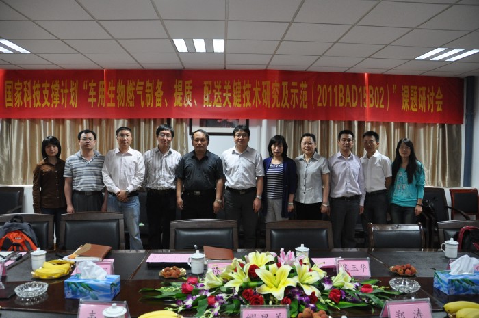 2012年5月19日上午,国家科技支撑计划“车用生物燃气制备、提质、配送关键技术研究及示范(2011BAD15B02)”课题组,在南工大生工学科楼第一会议室举行专题研讨会。会议由课题组长广州能源研究所孙永明研究员主持,农业部规划设计研究院能源环保研究所张玉华副所长、中国石油大学新能源研究院周红军副主任、南工大beat365亚洲体育官方网站韦萍经理、各单位研究骨干及相关研究生参加了会议。