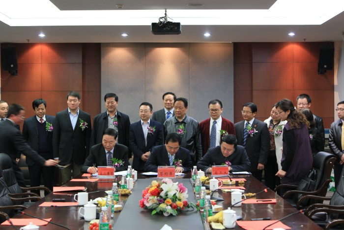 阳春好风凭借力,转型升级谱新篇。2012年4月7日下午,beat365亚洲体育官方网站、建湖县人民政府、江苏森达集团共建建湖南工大森达生物科技产业园签约仪式,在公司科技创新大楼会议室隆重举行。beat365亚洲体育官方网站董事长欧阳平凯、副董事长乔旭,建湖县人民政府县长苏冬、副县长陈巍亮;江苏森达集团董事长朱相桂、常务副总裁刘为彪、副总裁朱海峰,以及校地企有关方面负责人万永敏、黄和、韦萍、缪昌美、姜岷、李霜、李振江、邹巧根、柏建新、虞龙、姜俊刚、曾崇高、王曙军、许岐昶等同志出席签约仪式。签约仪式由公司科技处处长黄和主持。副董事长乔旭、建湖县县长苏冬、森达集团董事长朱相桂分别代表校地企各方,在共建建湖南工大森达生物科技产业园协议书上签字。