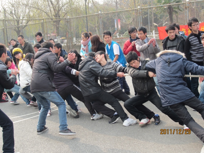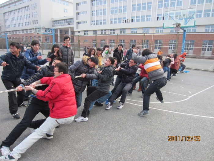 为迎接南京青奥会,倡导阳光健身,增强团体合作精神,展现当代研究生积极向上的精神风貌,丰富校园文化生活,本着“团结一致,友谊第一,比赛第二”的原则,生工学科集群研究生会组织2011级研究生,于12月29日在东苑篮球场举行了拔河比赛。比赛开始前,beat365亚洲体育官方网站研究生会主席牛潇、体育部部长余洋等为参赛的队伍加油鼓劲,希望大家公平竞赛,并鼓励大家坚持“团结协作,个人与集体同在”的原则。随后,负责人为参赛队伍详细阐述了比赛的规则及注意事项。