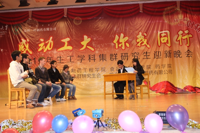 生物与制药工程公司党委书记缪昌美老师为晚会致辞。盛赞生工学科集群研究生会以“感动工大,你我同行”为题举行迎新晚会立意新远。他认为,感动是任何一个社会都不可缺少的精神财富。她所传递的向善力量能够凝聚人心,引导众人迎接现实社会的各种挑战。他说,同学们在科研工作中的执着和追求、在日常生活中的淡定和热忱,在社会公益活动中的仁爱和奉献,让我为之感动。学会感动,我们就会因感动我们的感动,感到生活的无限美好。我们感动,为亲友的关爱、为老师的教诲、为人间感人的真情、为苏州二叶制药的资助、为鼓楼特校老师的付出而感动。他相信,越来越多彰显人本真的“感动”,无疑会催生更多共识,凝聚更多社会正气,让社会发展更加良性。拥有感动,同学们就会在辞旧迎新的期待中有感而动,不断取得新的成绩和新的进步!