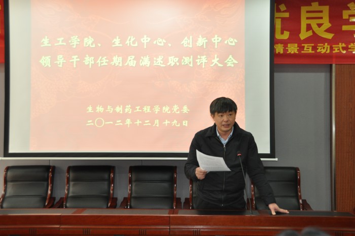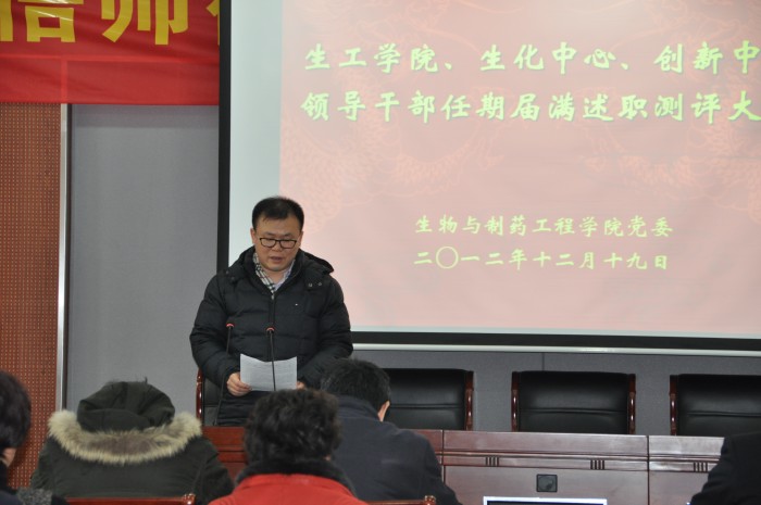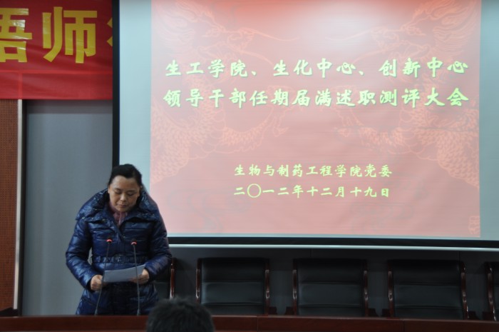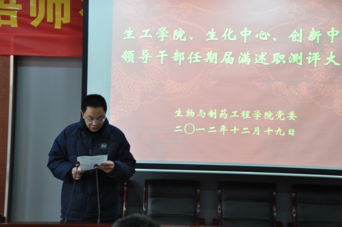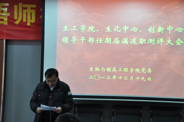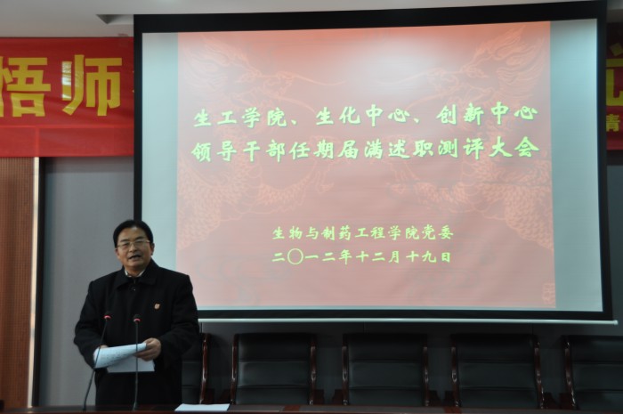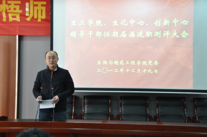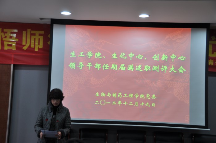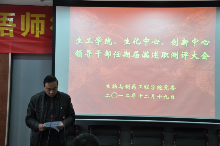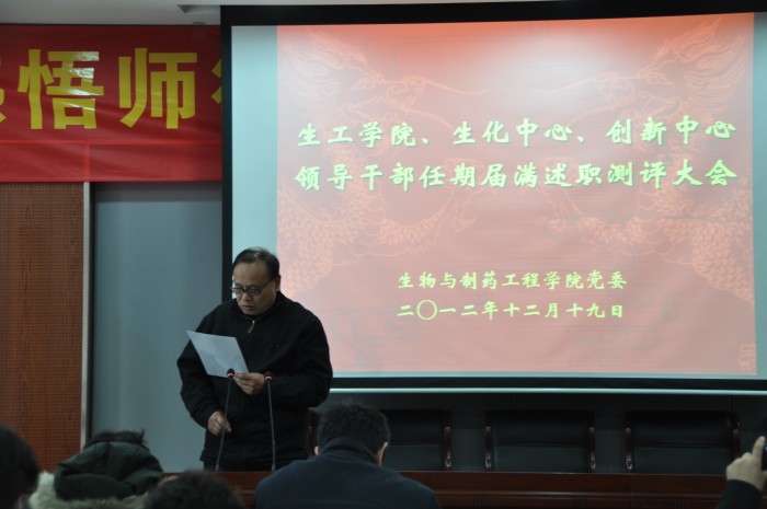 根据公司党委“关于中层干部任期届满考核工作的通知”精神,公司党委于2012年12月19日下午在生工学科楼报告厅举行领导干部任期届满述职述廉测评大会。公司党委委员、工会主席、教工党支部书记、各系(室)负责人、副高以上教师、副科级以上干部,公司党代会、教代会代表,特邀监察员、民主党派人士参加大会,听取了beat365亚洲体育官方网站、国家生化中心和江苏省工业生物技术创新中心领导干部述职。