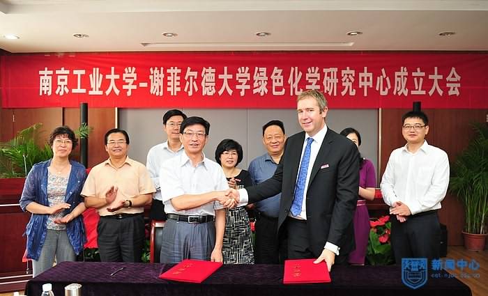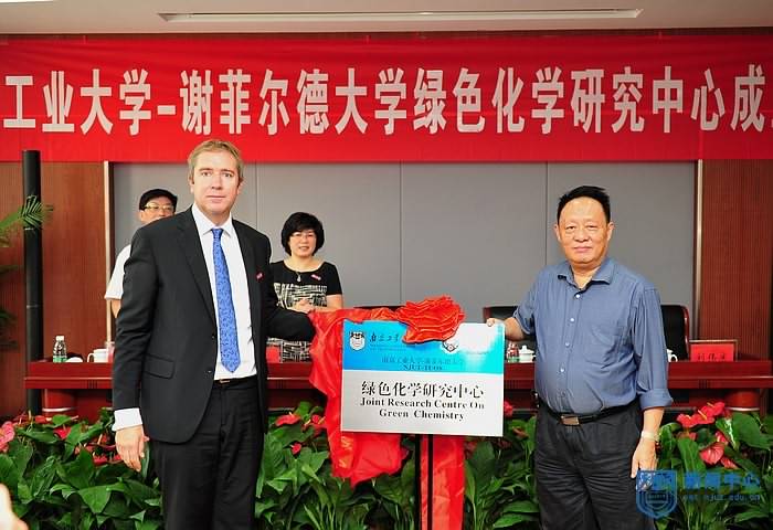 受聘仪式结束后,副董事长刘伟庆教授主持举行“beat365亚洲体育官方网站-谢菲尔德大学绿色化学研究中心”成立大会。副董事长张进明教授与克里斯·亨特教授分别代表beat365亚洲体育官方网站和谢菲尔德大学在合作协议书上签字。中国工程院院士、江苏省科协主席欧阳平凯教授,与克里斯·亨特教授共同为“beat365亚洲体育官方网站-谢菲尔德大学绿色化学研究中心”揭牌,拉开了双方合作的序幕。