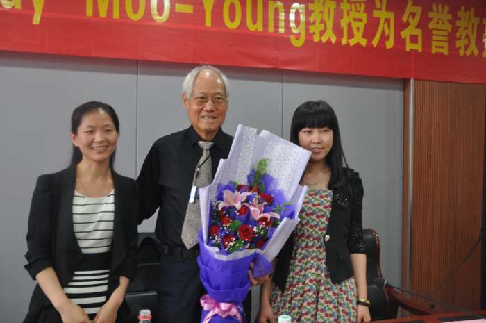 Murray Moo-Young,加拿大滑铁卢大学杰出的荣誉教授,国际生物化学工程学科的奠基者,国际环境生物技术学科的主要奠基人之一。主要从事生物反应器、生物修复和生物能源等方面的研究,发表学术论文340多篇,编辑出版专著教材12部,获专利9项。由于其杰出的学术贡献,Moo-Young教授当选为生物工程界最高荣誉的美国医学和生物工程研究院(FAIMBE)院士和加拿大学者最高荣誉的加拿大皇家学会(FRSC)院士。在全球多个工业和政府部门担任顾问,包括杜邦、辉瑞、联合国开发计划署、联合国粮农组织、美洲国家组织。长期担任多个国际著名学术刊物的主编或编辑,如《Biotechnology Advances》杂志的主编和《Comprehensive Biotechnology》 2011年第二版的主编。