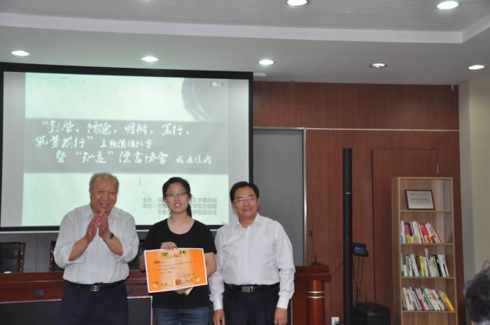 公司党委书记缪昌美老师为“知远”漂书协会授牌,以“阅读分享,博学博雅”,为“知远”漂书协会“点赞”致贺;以“学而不思则罔,思而不学则殆”,要求“知远”漂书协会通过举行经常性的读书心得交流,拓展漂书活动的“效应圈”;以“读万卷书,行万里路”勉励生工学子知行合一,努力实现自身的全面发展。他希望生工学子好好领悟习近平总书记的五四讲话精神,秉承“明德、厚学、沉毅、笃行”的校训,在“勤学、修德、明辨、笃实”上下功夫,用“奋斗的青春最美丽”励志筑梦,谱写好“有梦想有机会有奋斗,一切美好的东西都能创造出来”的青春乐章。会上,“知远”漂书协会会长鲍晶晶向同学们介绍了漂书规则、协会成员。与会老师和各团支部的代表分别向“知远”漂书协会捐赠了一批图书。
