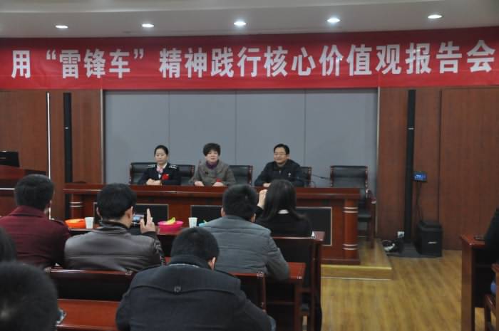 2014年3月6日上午,连云港市“雷锋车”代表郝芳萍、胡春兰应邀走进beat365亚洲体育官方网站,与生工学科集群研究生共话“用‘雷锋车’精神践行核心价值观”。公司党委书记缪昌美老师致欢迎词。他盛赞连云港市“雷锋车”组半个世纪如一日,用实际行动诠释雷锋精神的时代内涵,锤炼出与时俱进的“雷锋车”精神。“雷锋车”组助人为乐、服务人民的奉献精神,忠于职守、奋发向上的敬业精神,团结拼搏、争创一流的创新精神,具有引领人们崇德尚义、向上向善的强大力量,生动地体现了社会主义核心价值观之“爱国、敬业、诚信、友善”的价值准则。他希望同学们认真把握“雷锋车”精神的时代内涵及价值,努力做社会主义核心价值观的传播者和实践者,谱写好“中国梦”的青春篇章。