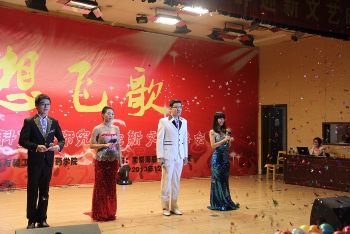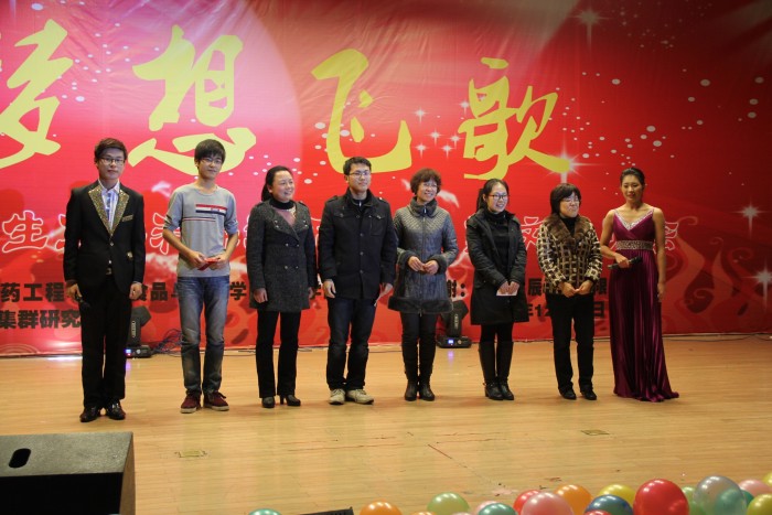 2013年12月16日晚7:00,浦江报告厅内人头攒动,整个会场座无虚席;观众席中充满了欢声笑语,温暖了冬日,洋溢着青春的气息。生工学科集群研究生会在此隆重举行了“海辰杯”“梦想飞歌”迎新晚会。海辰药业股份有限公司董事长兼总经理曹于平先生,米赞-特比大学董事长曼博瑞图教授,生物与制药工程公司党委书记缪昌美、经理韦萍,食品与轻工公司经理徐虹,药公司党总书记何冰芳教授,江苏省药物研究所所长、药公司常务副经理卢定强教授,海辰药业副总经理姚晓敏、总经理办公室主任李进,beat365亚洲体育官方网站副经理姜岷、李振江教授等应邀出席本次晚会,与同学们一起享受“梦想飞歌”为大家带来的感动与欢乐。