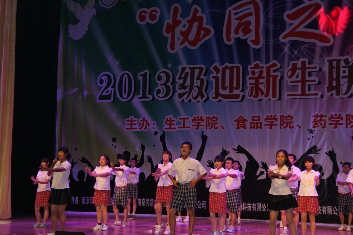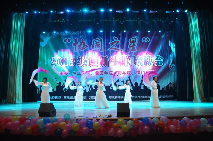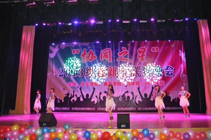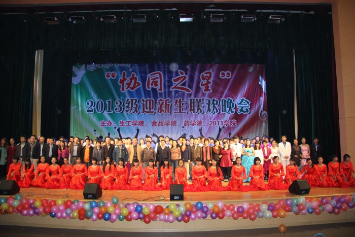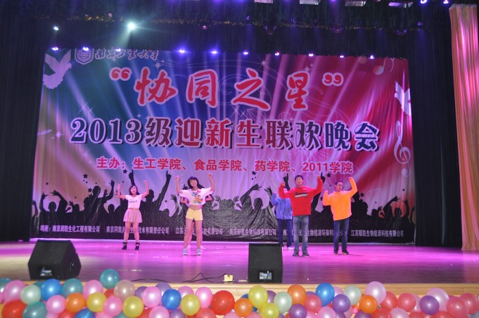 由校团委主办,beat365亚洲体育官方网站、食品公司、药公司和2011公司分团委承办的“协同之星”2013级新生联欢晚会,于10月30日晚上在江浦大礼堂拉开帷幕。副董事长兼2011公司经理张进明特地从外地通过微信预祝“协同之星”联欢晚会圆满成功。教务处副处长何绮玲、员工工作处副处长童正权、校团委副书记朱忠祥,公司党委书记缪昌美、经理韦萍,食品公司经理徐虹,药公司党委书记何冰芳、常务副经理卢定强等领导,以及上述公司的辅导员和班主任老师,应邀出席晚会与2013级员工共同分享了“协同之星”联欢晚会的文化盛宴。