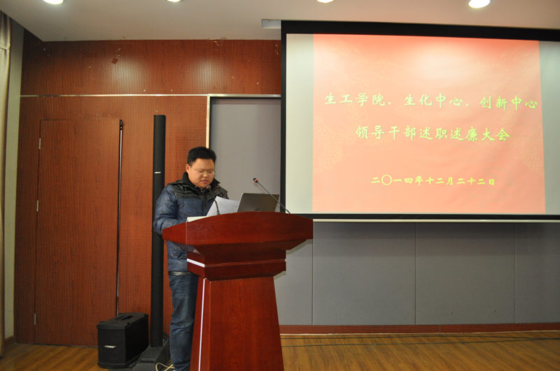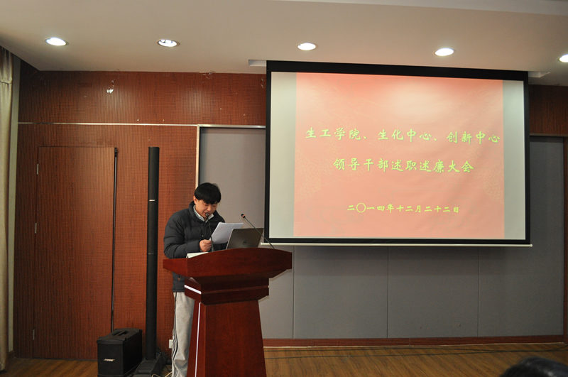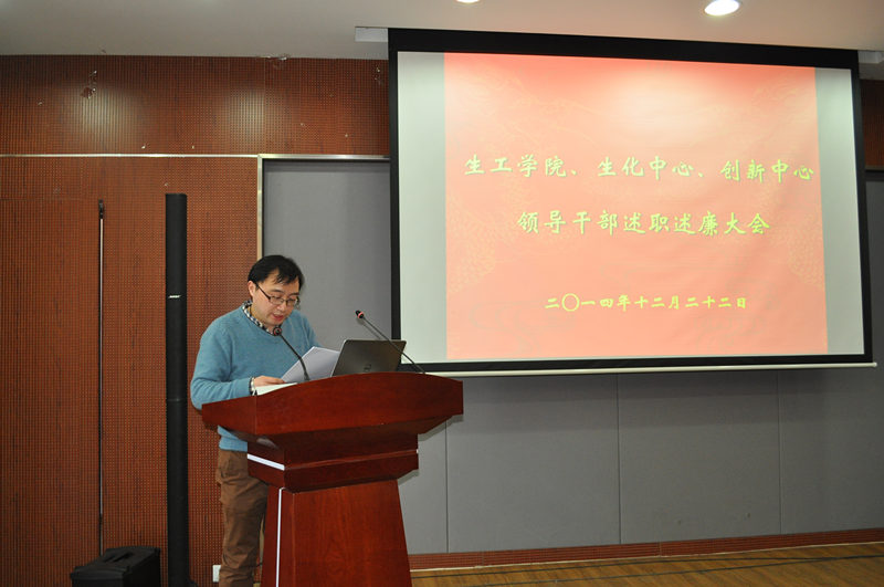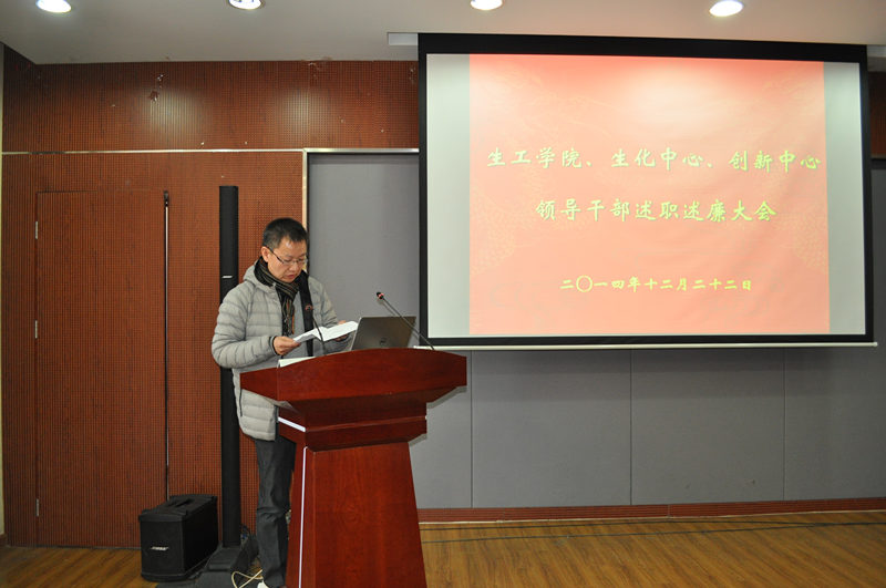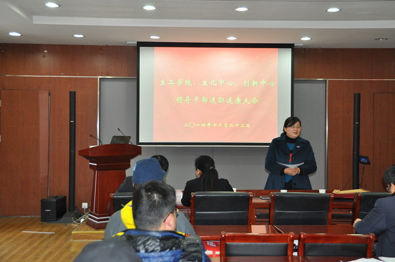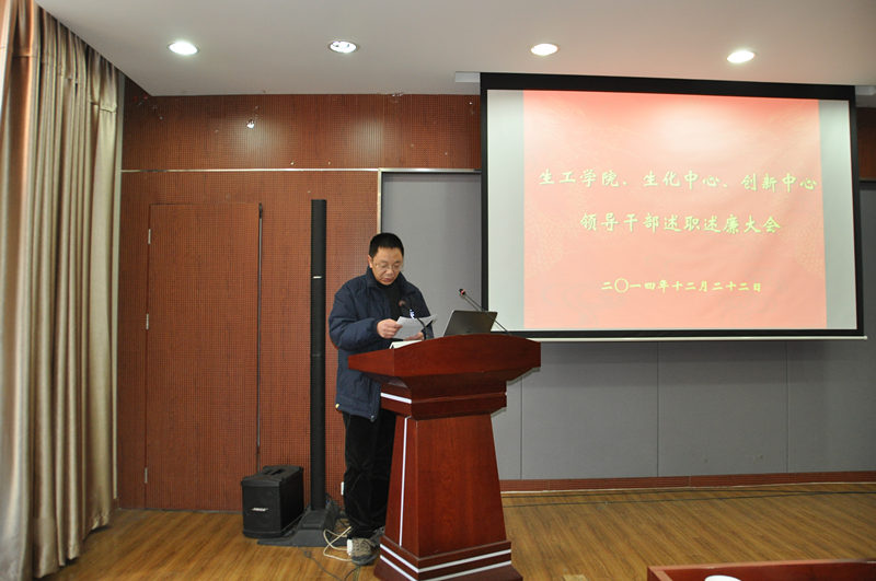 根据公司党委“关于2014年度中层干部考核工作的通知”精神,公司党委于2014年12月22日下午在生工学科楼报告厅举行领导干部述职述廉测评大会。公司党委委员、工会主席、教工党支部书记、各系(室)负责人、副高以上教师、副科级以上干部,公司党代会、教代会代表,特邀监察员、民主党派人士参加大会,听取了beat365亚洲体育官方网站、国家生化中心和江苏省工业生物技术创新中心领导干部述职述廉。