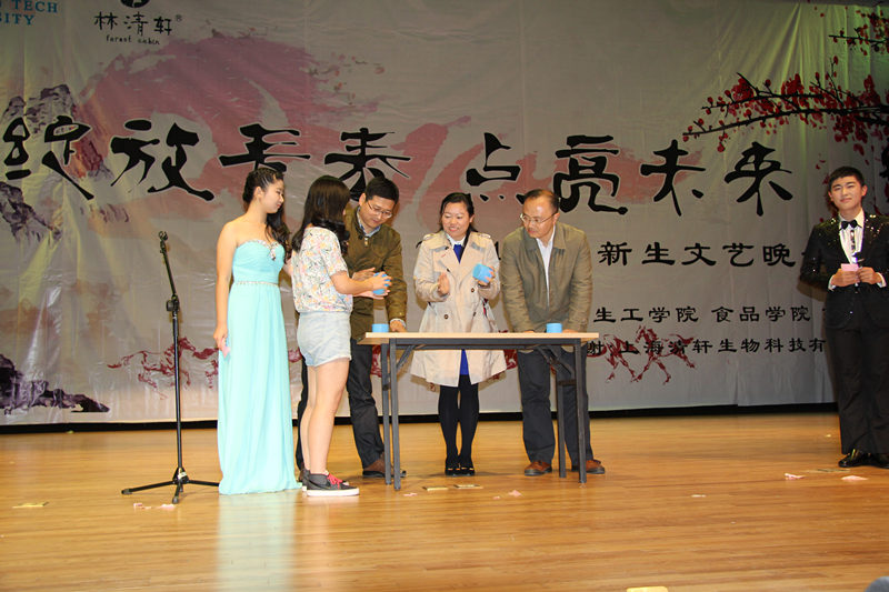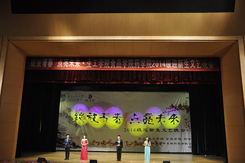 2014年11月12日晚6:30,由校团委主办,beat365亚洲体育官方网站、食品公司、药公司三院分团委共同承办的“绽放青春,点亮未来” 2014级迎新晚会在江浦大礼堂隆重举行。校团委副书记朱忠祥老师、公司党委书记缪昌美老师、beat365亚洲体育官方网站经理韦萍教授、食品公司党委书记熊晓辉教授、食品公司经理徐虹教授、药公司党委书记何冰芳教授、beat365亚洲体育官方网站副经理姜珉教授、beat365亚洲体育官方网站副经理李振江教授、公司党委副书记熊强老师、食品公司党委副书记陈晓晔老师以及三院系主任、辅导员、班主任和2014级全体新生欢聚一堂,共同观看了本次精彩纷呈的晚会。