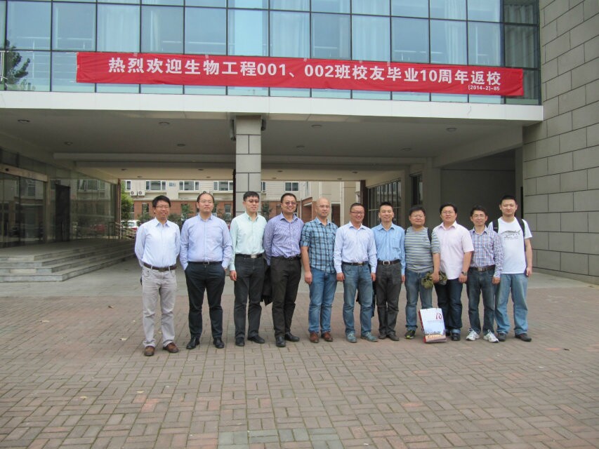 毕业十年,弹指一挥间;金秋有约,欢聚在母校。2014年10月18日,南工新世纪元年入学的生工001班、002班30余名员工,毕业十周年聚首母校,交流分享人生体验;畅谈升华同窗情谊;共筑未来共勉奋进。十年来,生工001班、002班员工与母校和祖国携手同奋进,既是母校和祖国蓬勃发展的见证者和分享者,也是激扬青春追求卓越的奋进者和佼佼者。他们中既有留学回国在高校教书育人的教授,也有留在哈佛任教的青年才俊;既有在中科院工作的后起之秀,也有在国外从事博士后研究的学者赤子;既有在国家工程技术研究中心脱颖而出的青年骨干,也有担纲科技型企业的CEO,还有自主创业并吸纳老员工就业的弄潮儿……