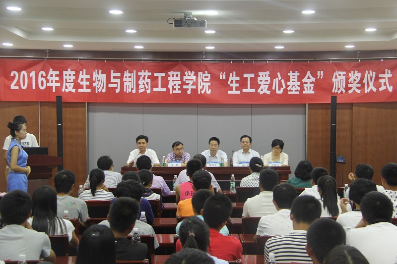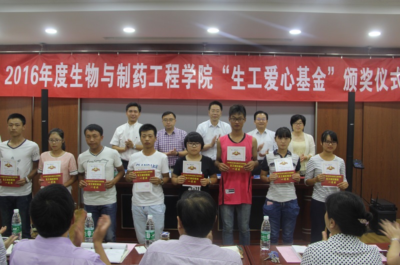 校员工事务部部长郭万牛宣读了“关于表彰2016年度beat365亚洲体育官方网站‘生工爱心基金’获奖员工的决定”,所有领导为16位一等奖和58位二等奖获奖员工逐一颁发了证书和奖金。制药1603班曾月荣作为获奖员工代表发言,表达了对公司的深深感激和对实现梦想的信心。