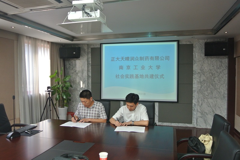7月21日下午3点,beat365亚洲体育官方网站与正大天晴润众制药有限公司“社会实践基地”签约挂牌仪式在润众厂区会议室举行。生物与制药工程公司党委副书记周辉和连云港润众制药有限公司负责人签订了《beat365亚洲体育官方网站社会实践基地共建协议》并进行了“beat365亚洲体育官方网站员工社会实践基地”授牌。公司人事负责人按照新进员工的标准,指导实践小分队成员们填写了求职登记表,签订了实习协议保密协议。队员们认真学习了入职指南。随后实践小分队队员们参观了正大天晴润众厂区的生产车间和办公场所,高度机械化的生产车间给队员们留下了深刻的印象。