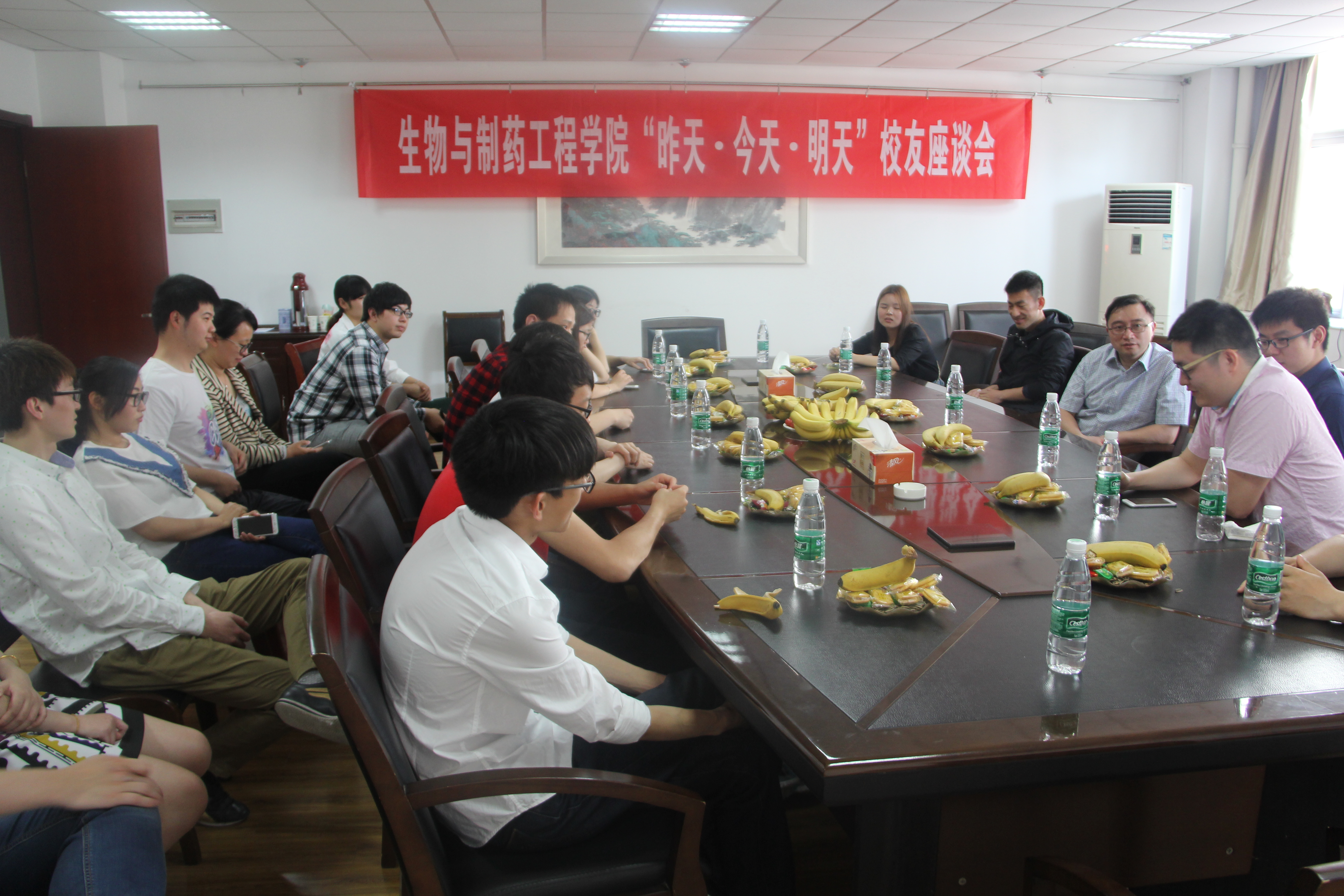 5月14日下午,beat365亚洲体育官方网站“昨天·今天·明天”员工座谈会在生工楼第一会议室举行。生物与制药工程公司党委书记姜岷、团委副书记吴雪、员工代表以及员工代表参加本次座谈会。返校员工们与公司老师、同学们欢聚一堂,其乐融融。