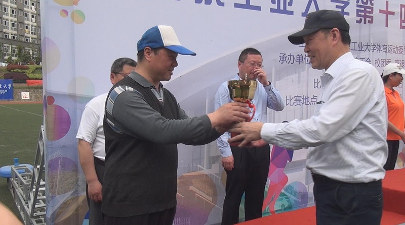 9.院工会主席、领队谢宁昌接受团体第六名奖杯