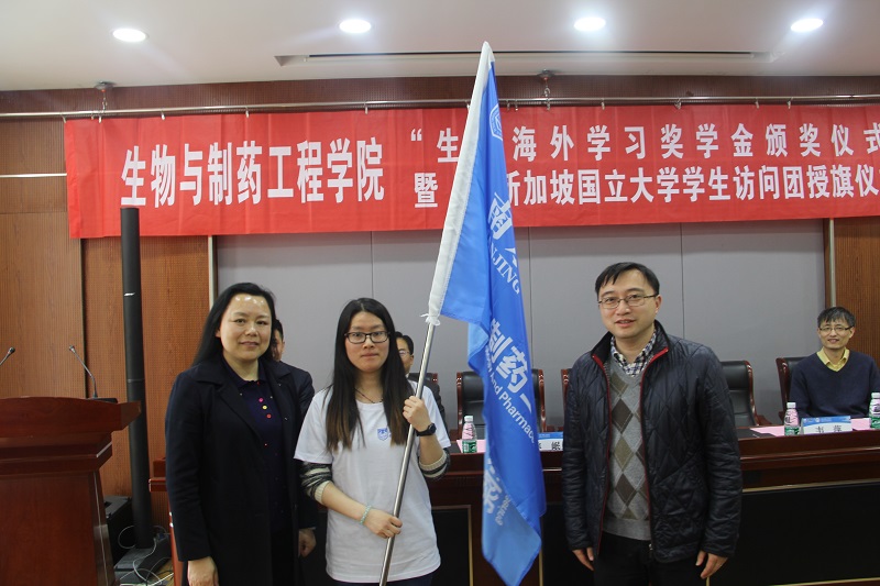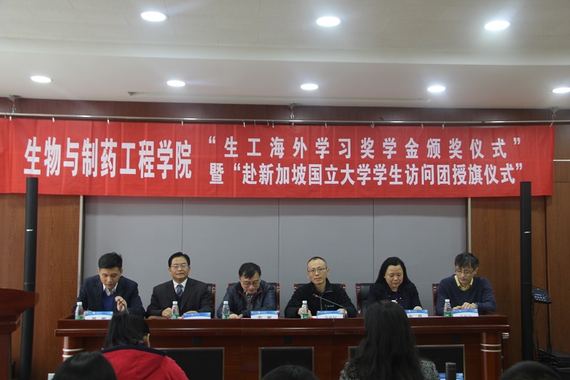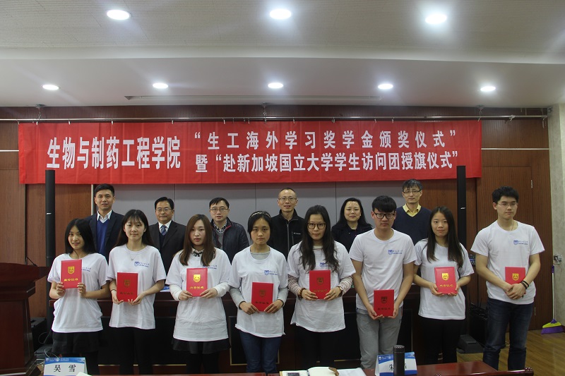 3月31号下午14:30,beat365亚洲体育官方网站2016年“海外学习奖学金”颁奖仪式暨“赴新加坡员工访问团”授旗仪式在生工楼一楼报告厅举行。员工事务部副部长童政权、beat365亚洲体育官方网站经理韦萍、党委书记姜岷、关工委常务副主任缪昌美、党委副书记周辉、教授朱颐申等出席活动。