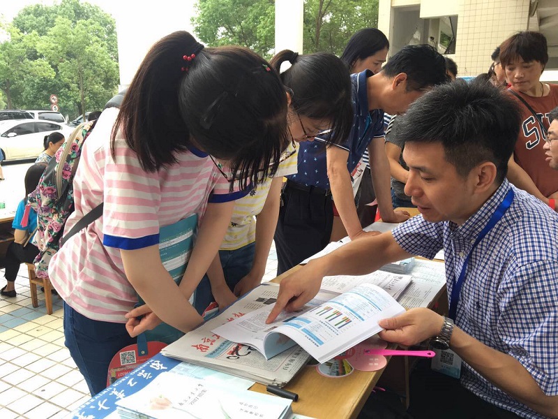 6月23日—7月2日,beat365亚洲体育官方网站在公司党委副书记、纪委书记朱跃钊带领下,公司经理韦萍、党委书记姜岷亲自带队,董事长办公室和公司老师等组成的21个招生小分队,分赴南京市秦淮区、江宁区、雨花区、高淳区、溧水区和上海市、湖南省,深入重点中学和高招咨询会,顺利地完成了各项招生宣传任务。