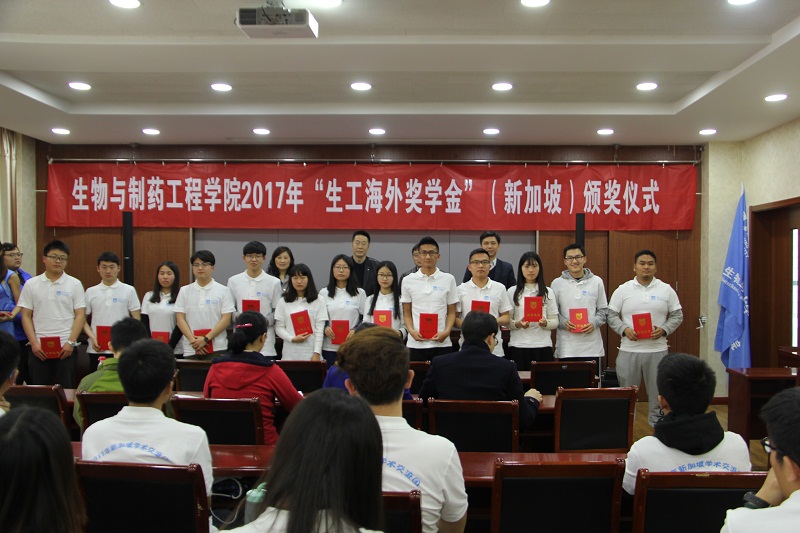 4月1日下午14:30,beat365亚洲体育官方网站2017年“海外学习奖学金”(新加坡)颁奖仪式在生工楼一楼报告厅举行。员工事务部部长郭万牛、副部长许翠梅,生物与制药工程公司党委书记姜岷、党委副书记周辉等出席活动。