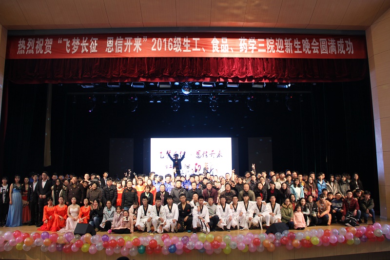 11月24日晚6:30, beat365亚洲体育官方网站、食品与轻工公司、药公司“飞梦长征 恩信开来”2016年迎新晚会在江浦大礼堂顺利举行。校员工事务部副部长张涛、校团委副书记朱忠祥、生物与制药工程党委书记姜岷、经理韦萍、关工委常务副主任缪昌美、食品与轻工公司经理徐虹、药公司党委书记何冰芳、生物与制药工程公司党委副书记周辉、食品与轻工公司党委副书记陈晓晔、副经理熊强、药公司党委副书记张琪、三院辅导员、新生班级导师等和三院2016级新生共同观看了本场晚会。