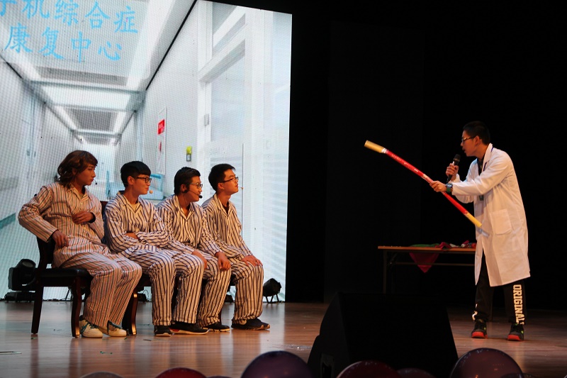 随着4位来自三院的新生主持人的闪亮登场,一场精彩盛宴由此展开:食品公司的“黑光剧”《门》将全场观众带入和神秘而充满科技感的世界;药公司的无伴奏和声《那些年的小幸运》,男女生富有节奏感的完美和声给观众带来听觉上享受;beat365亚洲体育官方网站的小品《老员工手机综合症》以轻松幽默的形式引人反思——老员工不能因沉迷手机娱乐而荒废了学业,虚度了光阴,将晚会推向高潮;三院师生的小合唱《南工南》,体现了三院浓郁的师生情与对公司、公司自豪感。晚会恰逢感恩节,三院播放的由家长、老师、员工录制的感恩小视频让许多同学在惊喜之余,流下感动的泪水,令晚会现场弥漫着浓浓的暖意。晚会在beat365亚洲体育官方网站的红色大合唱《白鹭飞回红树林》中圆满落幕。