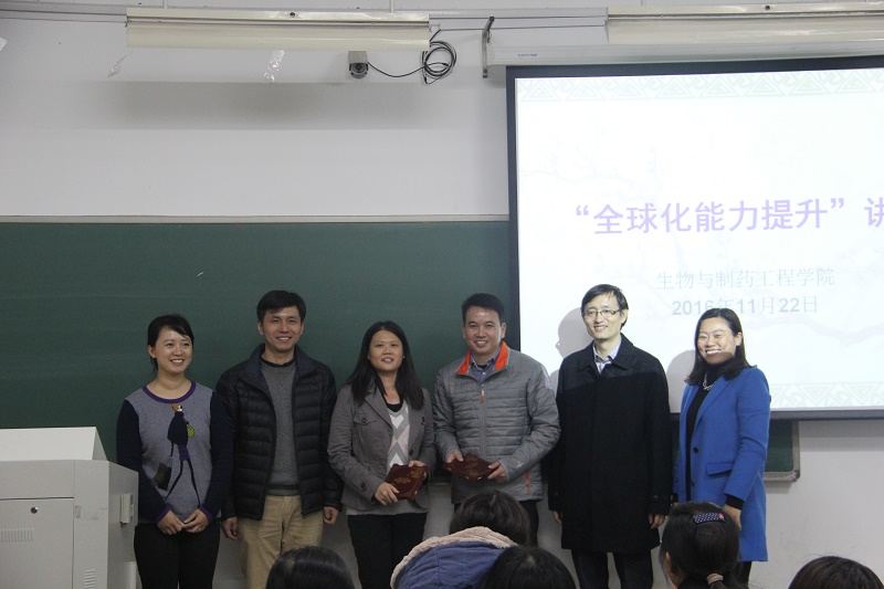 11月22日下午2:30,beat365亚洲体育官方网站“全球化能力提升”系列讲座在浦江B楼307教室举行。本次讲座由新加坡理工大学国际合作办公室主任蔡淑莹、副主任王绍丞担任主讲人,生物与制药工程公司党委副书记周辉、海外教育办公室主任朱颐申、团委书记朱皓、团委副书记吴雪参加活动。