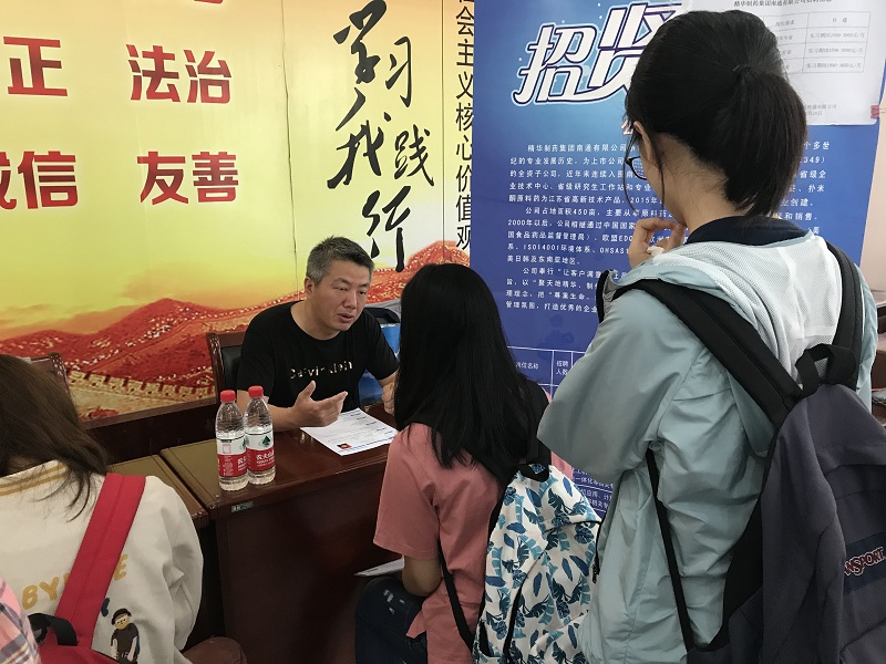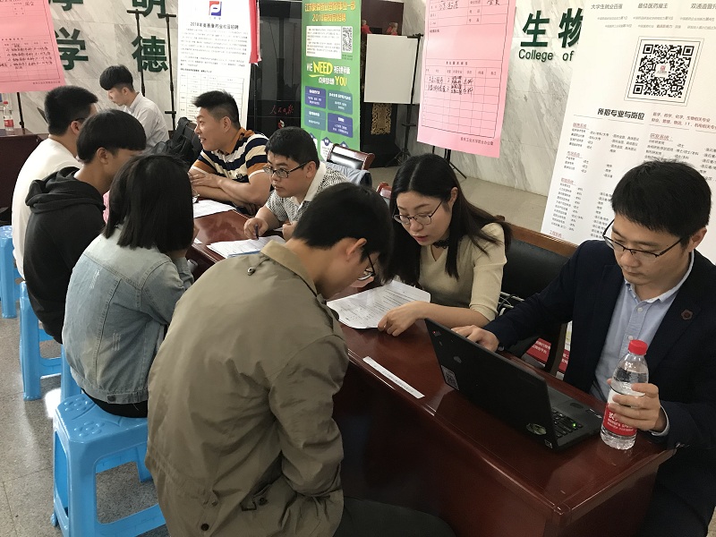 上午9点至12点,参会企业依次在生工楼报告厅进行了宣讲,通过beat365亚洲体育官方网站介绍进一步加深同学对生物制药类企业的岗位需求、职业发展等方面的了解。同时,“卓越计划双选会”在生工楼大厅举行,公司共400余名员工参加,场面火爆。本次双选会提供了研发、质检、生产、销售等400余个实习岗位,30多位来自知名企业的人力资源负责人与同学们面对面交流,选聘储备人才,公司事先将企业反馈的招聘信息进行了汇总宣传,让同学们能够结合自身情况与对企业的了解递交简历。下午13点至16点,参会企业分别在生工楼各会议室进行了单独面试。本次双选会新增药明康德、南京医药、南京高远医疗、南京纳美特生物、南京中图数码等5家卓越企业。
