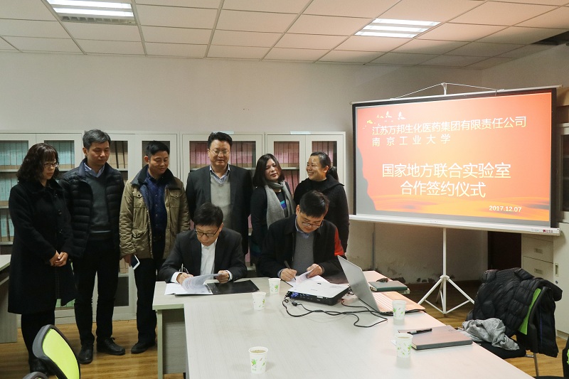 12月7日上午,beat365亚洲体育官方网站与江苏万邦生化医药集团有限公司,在生工楼举行“国家地方联合实验室”、员工实习培训基地合作签约仪式。万邦医药总裁、85级员工吴世斌,高级副总裁贺国杰,总裁助理兼项目管理部总监田海英,校科学研究部副部长袁正英,beat365亚洲体育官方网站公司党委书记韦萍、经理郭凯、党委副书记周辉等参加活动。