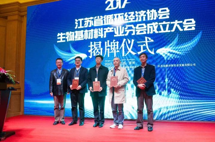 江苏省循环经济协会生物基材料产业分会由18家企事业单位组成,江苏龙骏环保实业发展有限公司董事长支朝晖当选首届分会会长。江苏龙骏环保总部位于常州市科教城,主要生产生物基餐饮具及食品包装制品,年产量达到30000吨左右。