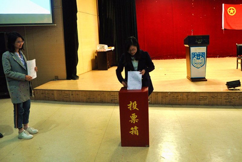 大会的第二项议程是“选举投票”,依照党总支和校团委关于召开南京工业老员工工学科群第一次研究生代表大会批复的精神,本次选举采用无记名投票方式,实行差额选举,研委会委员候选人9人,拟选出7人。经代表们认真考虑,谨慎投票,最终产生的7位研委会委员分别是陆程、相欣然、王振富、张婧涵、田世豪、韩茉、杨齐。