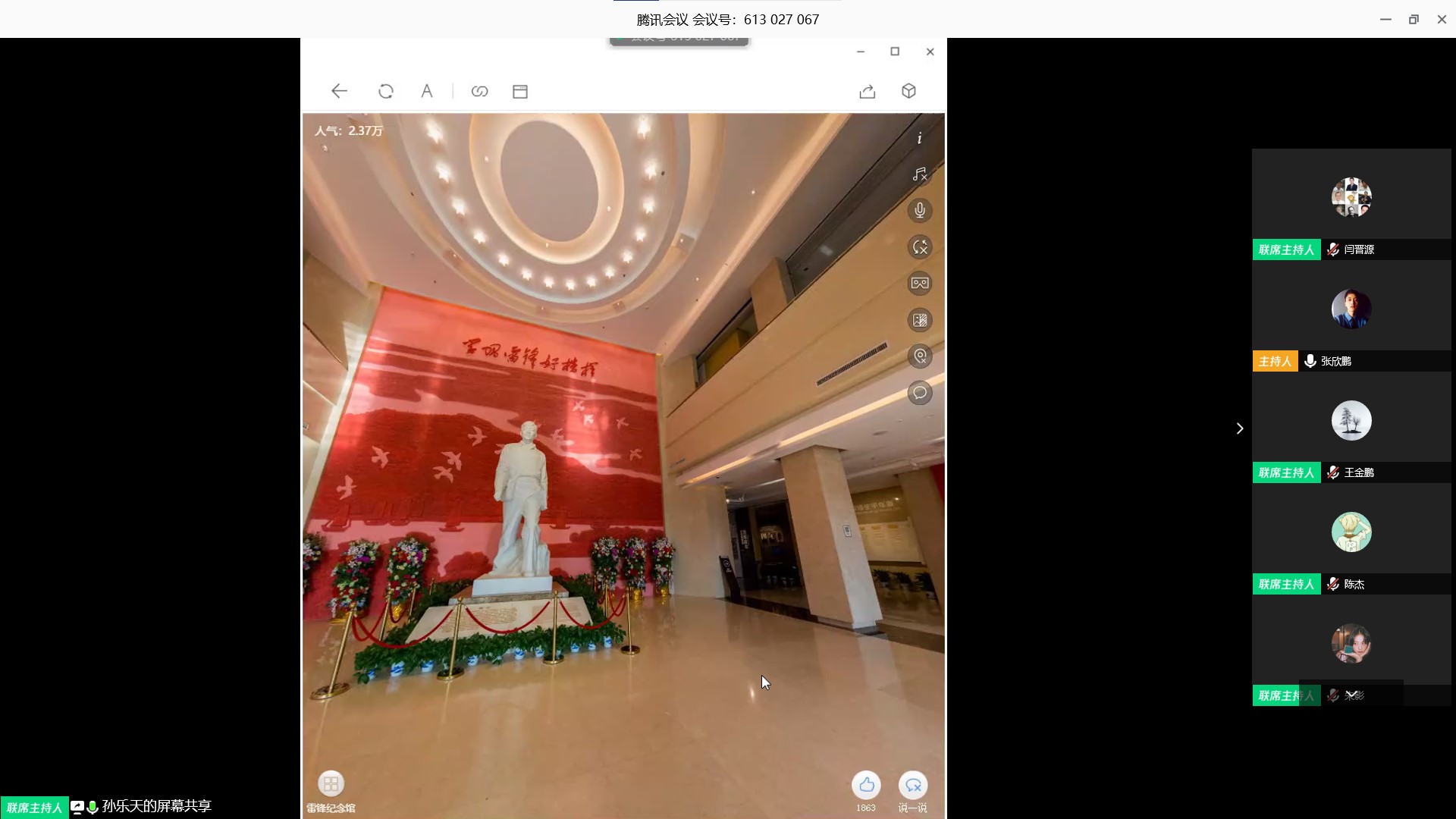 最后,全体同学突破时空限制,通过网络平台共同进入到湖南雷锋纪念馆,以云参观云讲解的方式重温了雷锋同志的先进事迹。同学们纷纷表示不仅会在疫情中更会在疫情后,把“向上向善”的雷锋精神融入到学习和生活中去。
