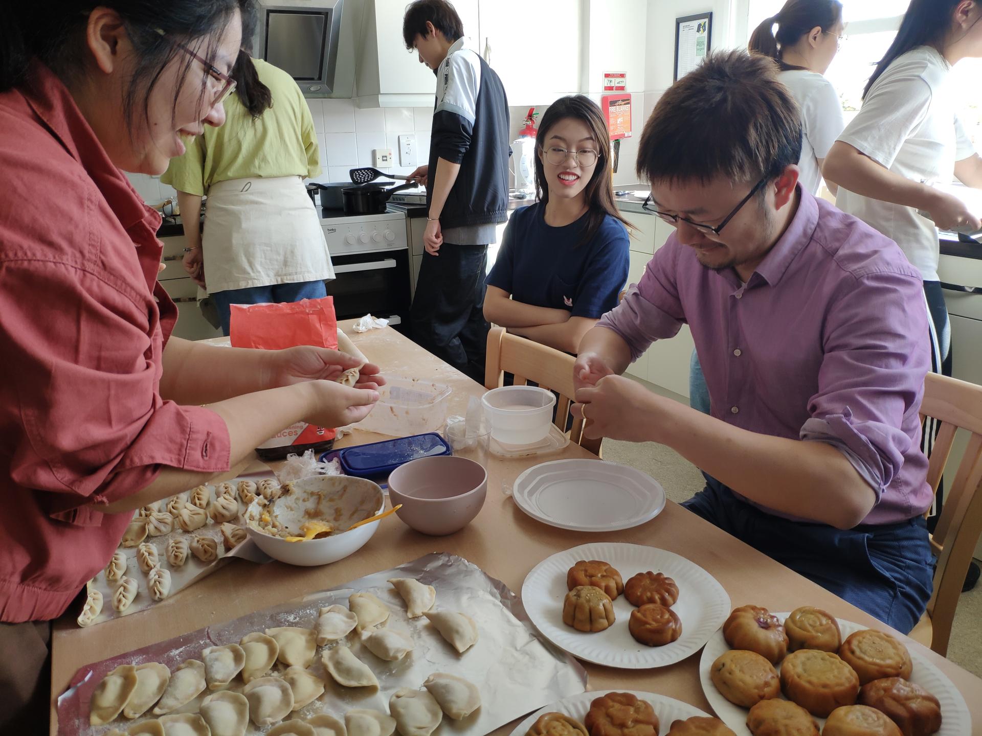 同学们自备食材,邀请剑桥大学的员工一起包饺子、做月饼,向外国友人讲述中秋的来历和习俗,氛围融洽,其乐融融。