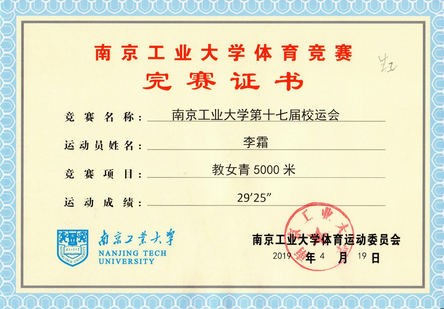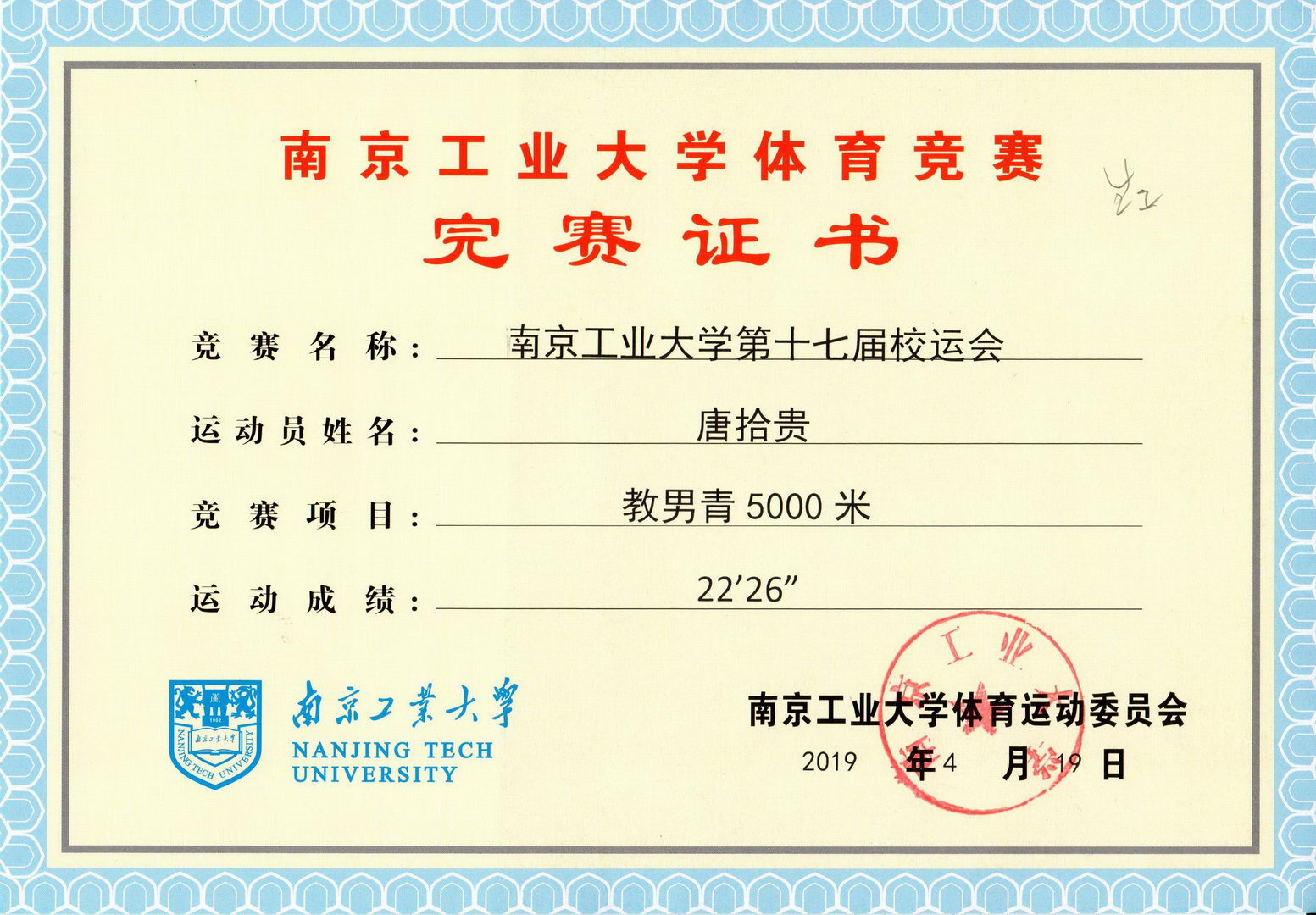 图5.唐拾贵在5000米长跑中(附完赛证书)